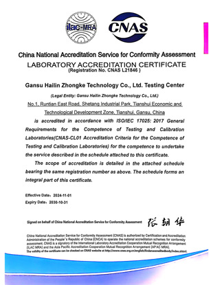 2024年11月通過(guò)了實(shí)驗(yàn)室認(rèn)可證