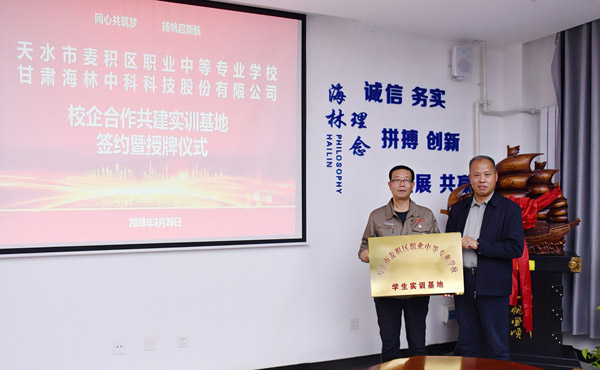 3月26日,天水市麥積區(qū)職業(yè)中等專業(yè)學(xué)校與海林公司校企合作共建實(shí)訓(xùn)基地簽約暨授牌儀式在公司2號(hào)會(huì)議室舉行。麥積區(qū)職業(yè)中等專業(yè)學(xué)校校長(zhǎng)李順田一行到訪交流,公司監(jiān)事會(huì)主席、工會(huì)主席劉興民等陪同。
